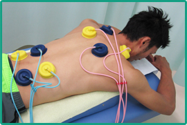 異なる周波の電流を流し体内の深部に刺激を与え、より高い疼痛緩和・血行促進を促します。